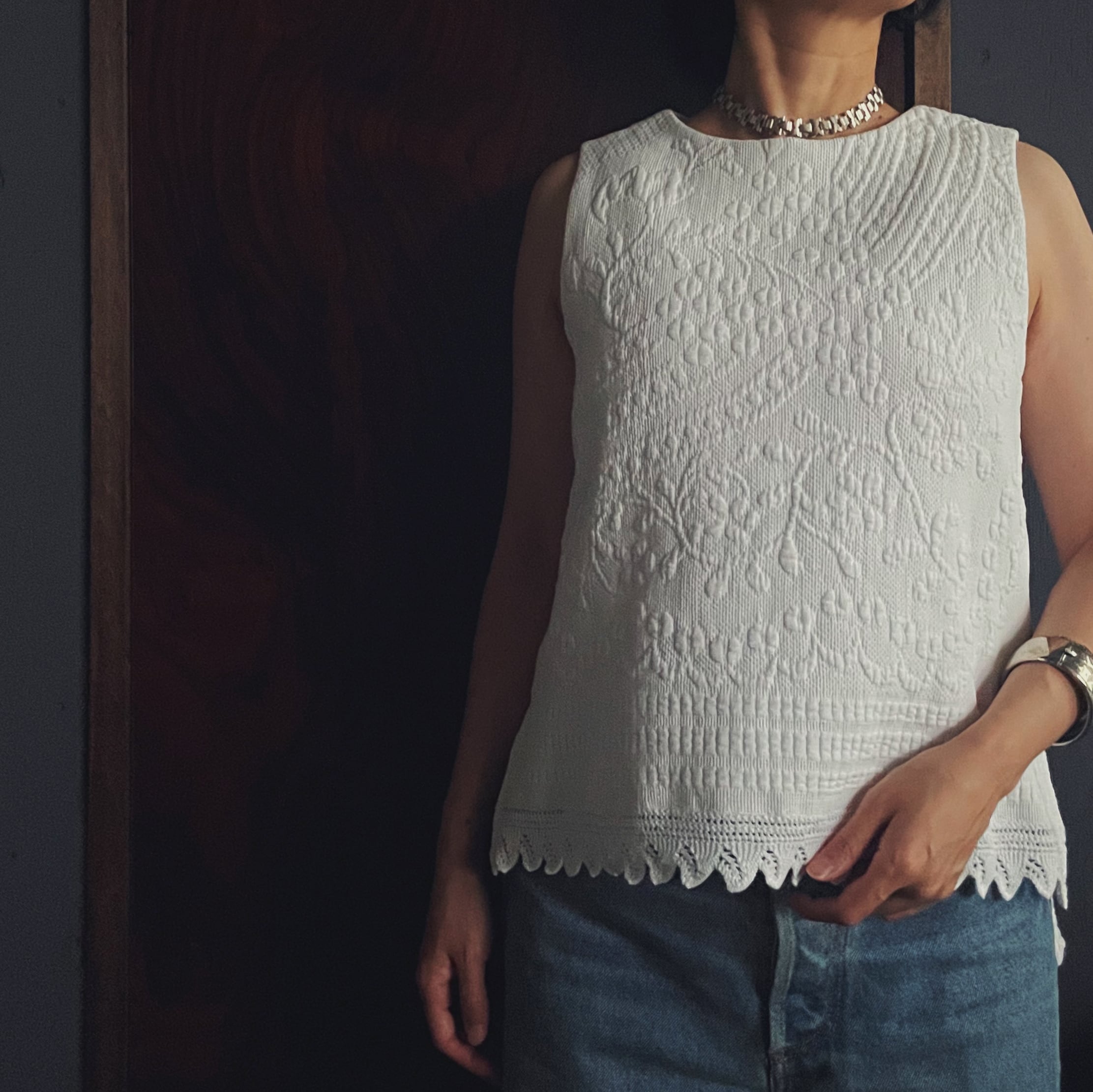 こちらは南フランスのピケを用いて仕立てたトップスです。