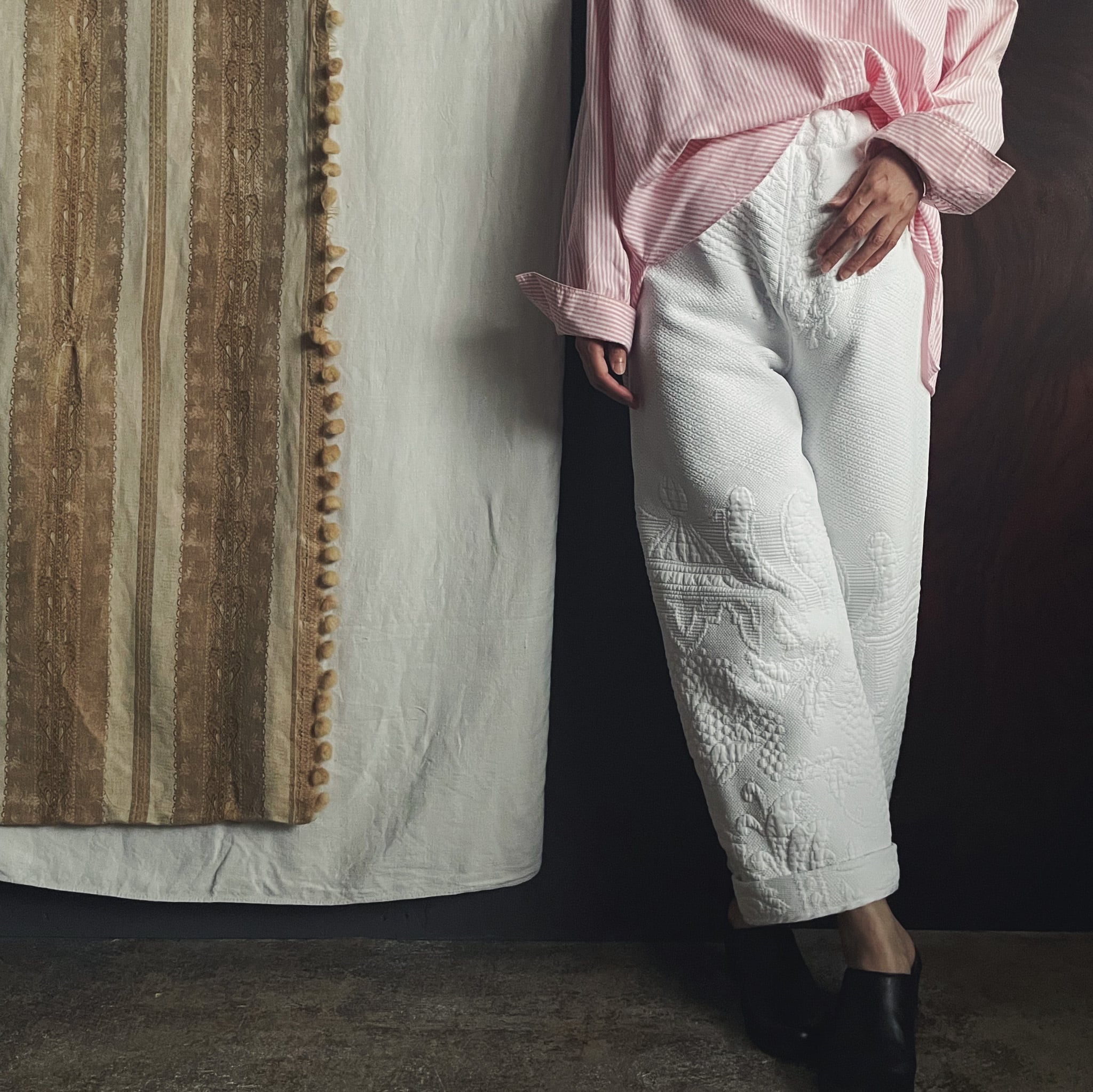 こちらは南フランスのピケを用いて仕立てたパンツです。