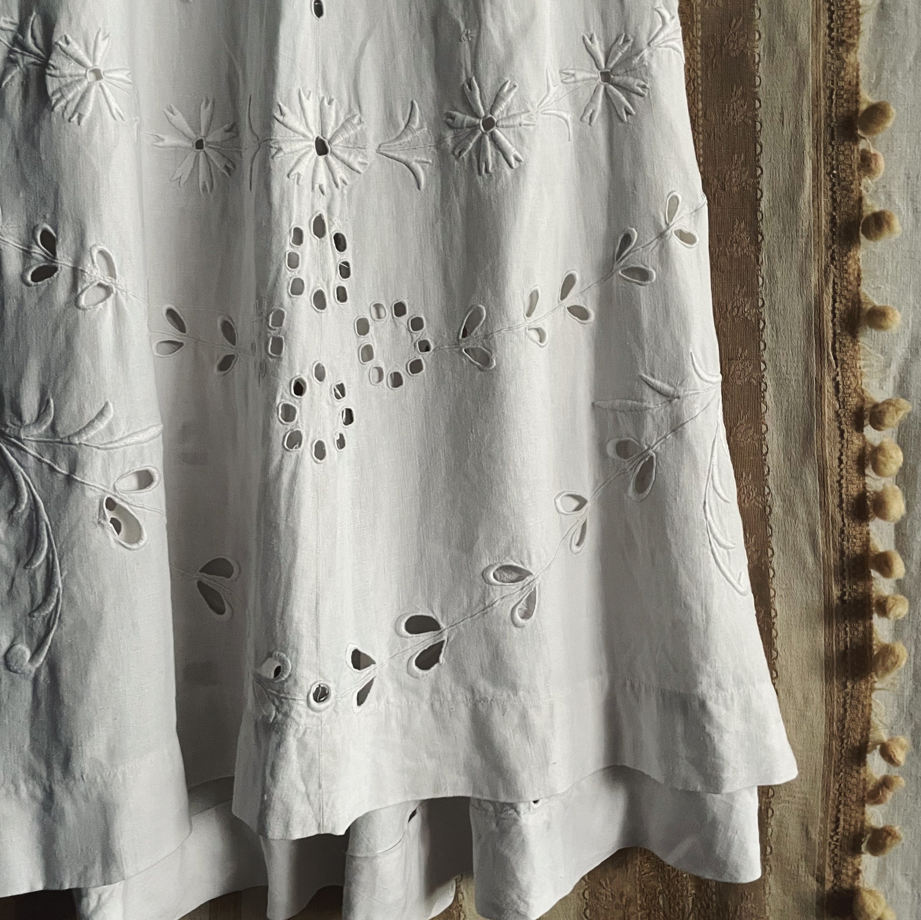 繊細なカットワークと手刺繍が美しいアンティークスカート。