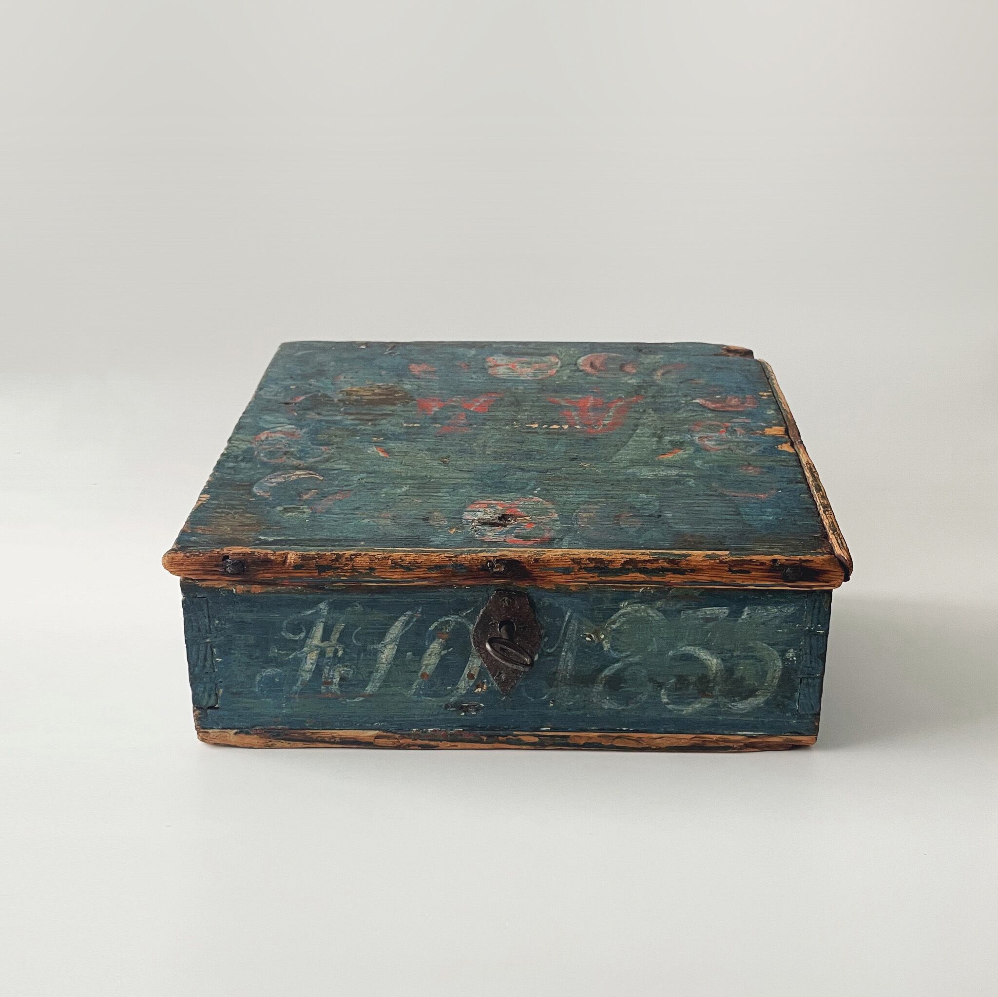スウェーデン 花柄の木箱 1855年