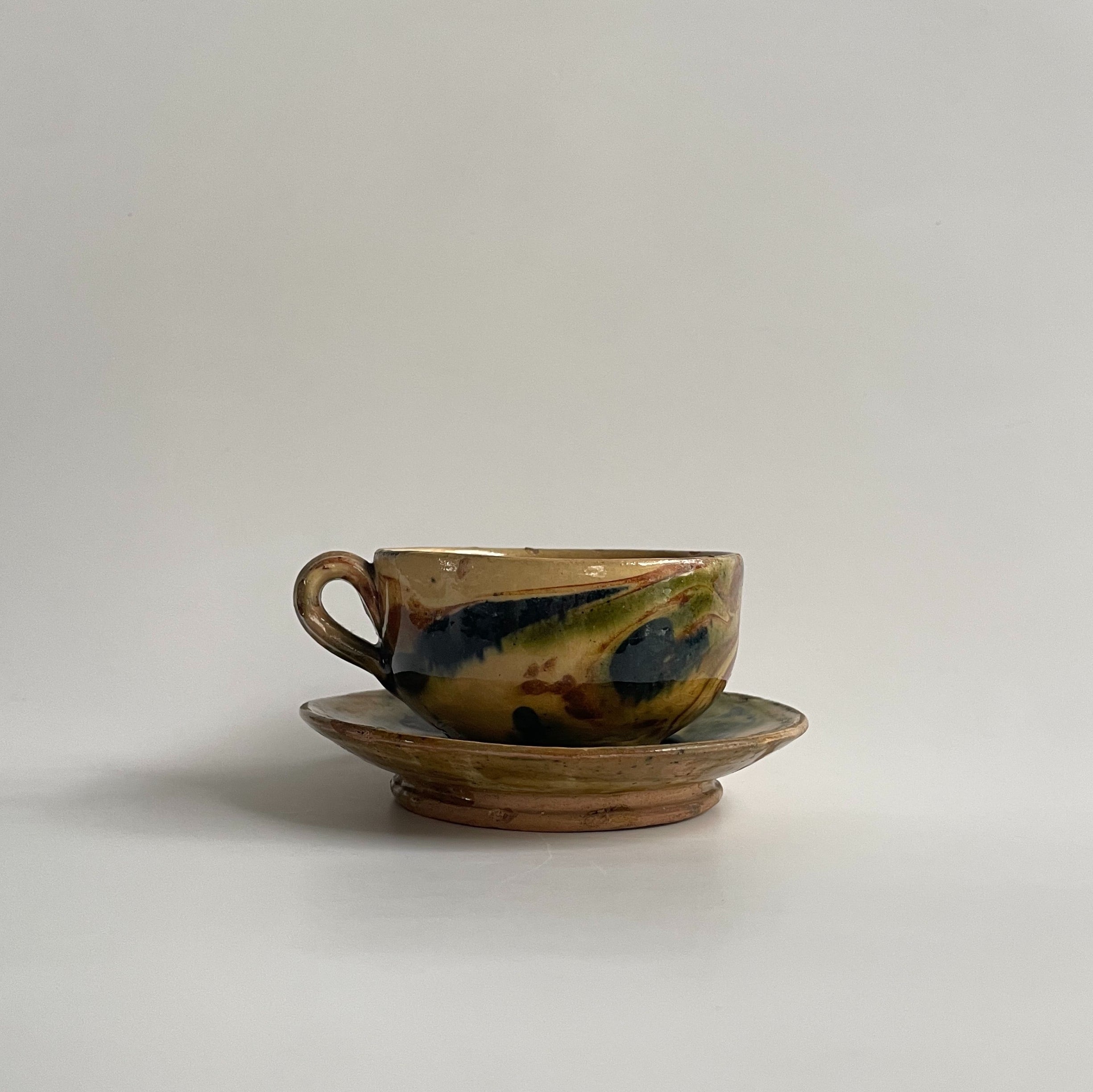 中世に修道院文化の中心地として栄えた、ブルゴーニュ地方の小都市、クリュニー。その土地の空気を宿すような、素朴さと力強さを感じるカップ&ソーサーです。