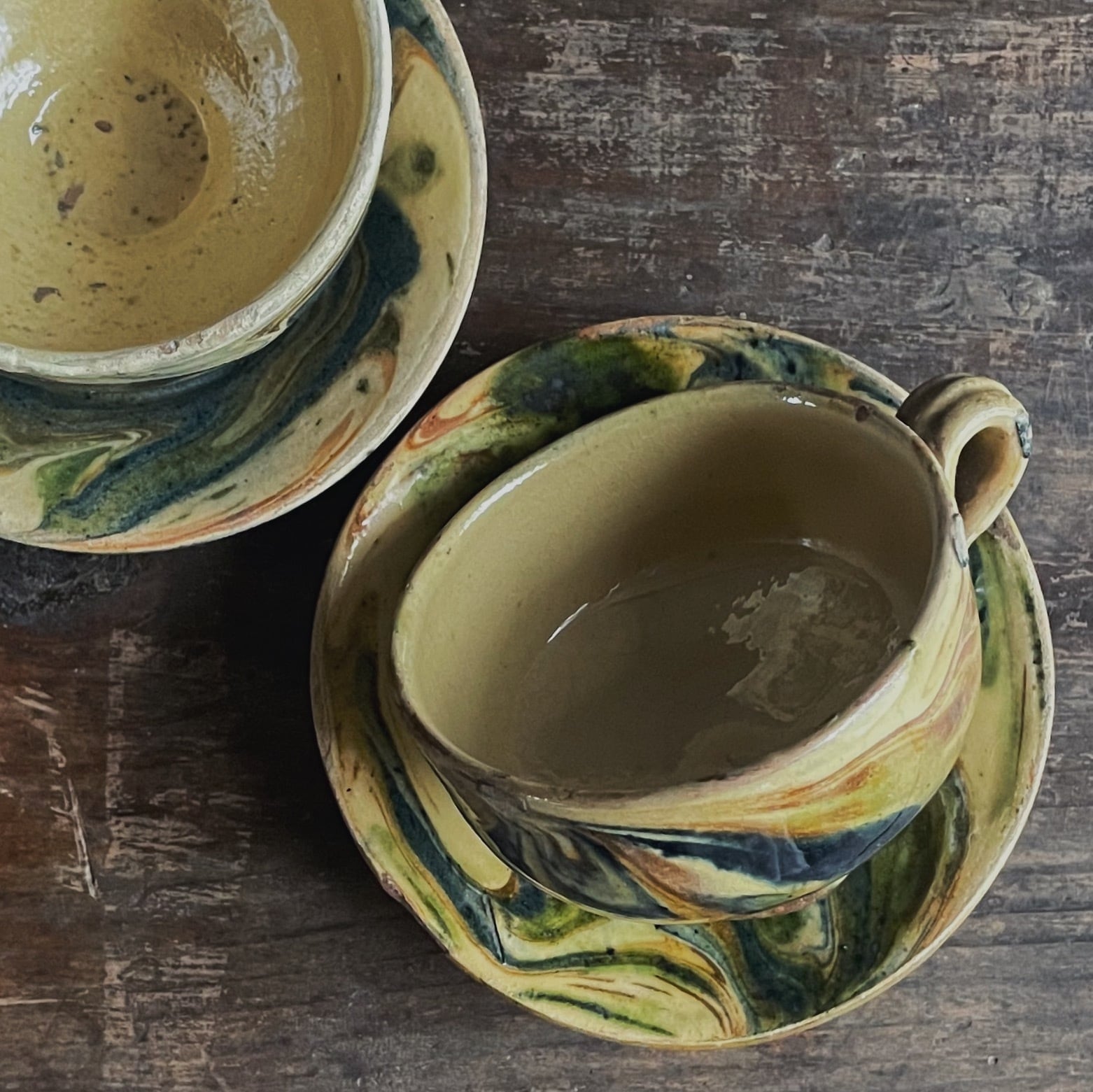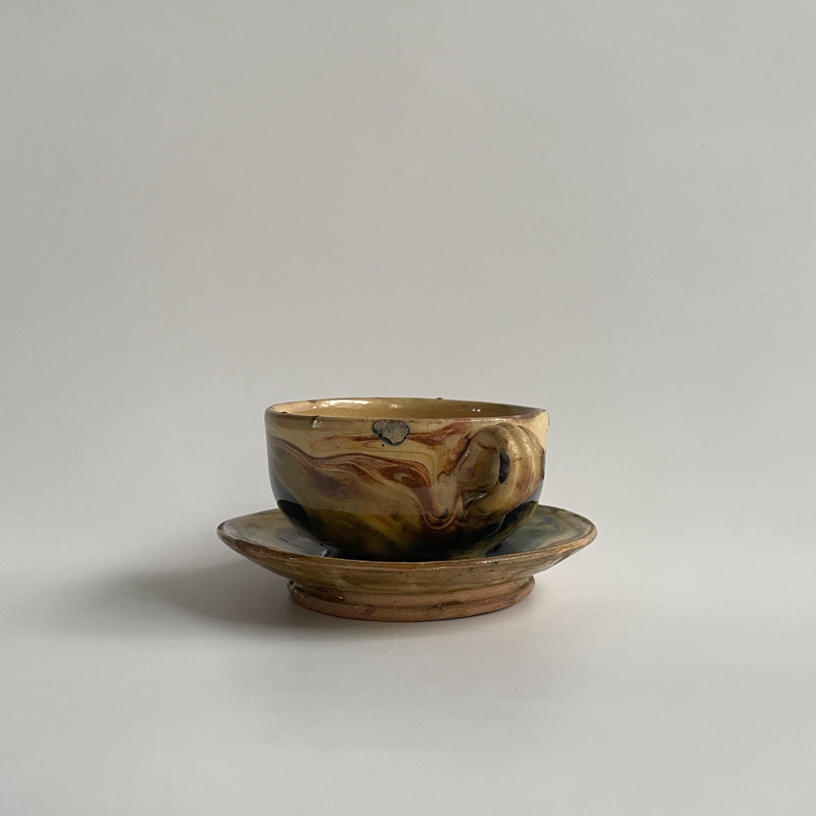 クリュニー マーブル模様 カップ&ソーサー 19世紀