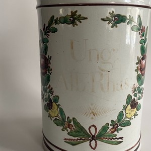 19世紀前半フランス パリの薬瓶。Deroche Frères作陶の、当時薬局で軟膏などの薬を保存するために使われていました。