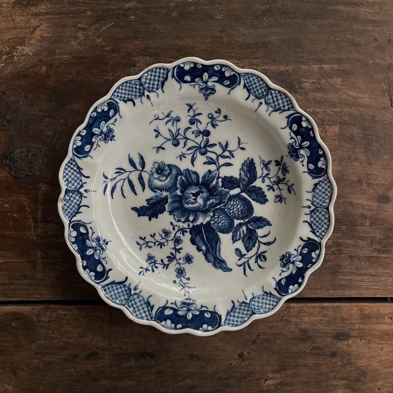 18世紀 WORCESTER 青花絵皿|イギリス ウースター ドクターウォール期