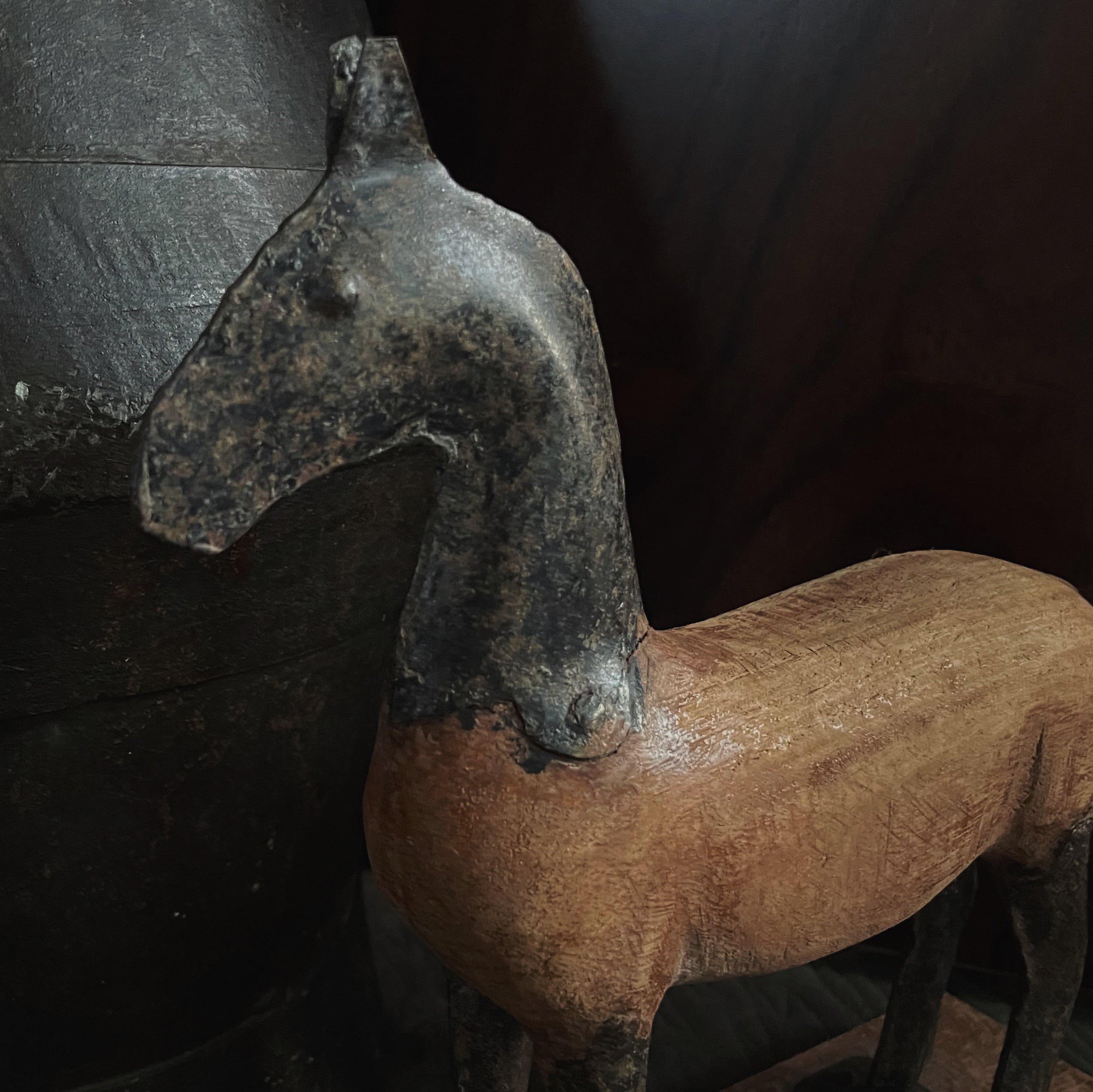 鉄と木、異なる素材を組み合わせてつくられた、南フランスの古い馬のオブジェ。