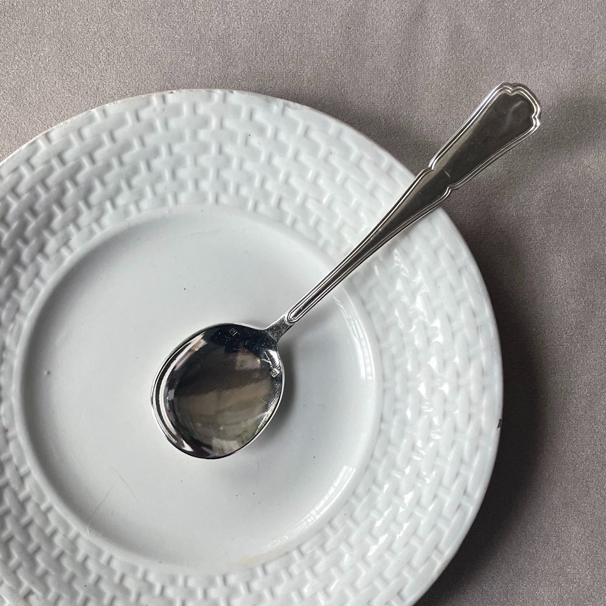 スプーンに入った「18」の刻印は、高品質なステンレス素材(18-8系)を示すもの。