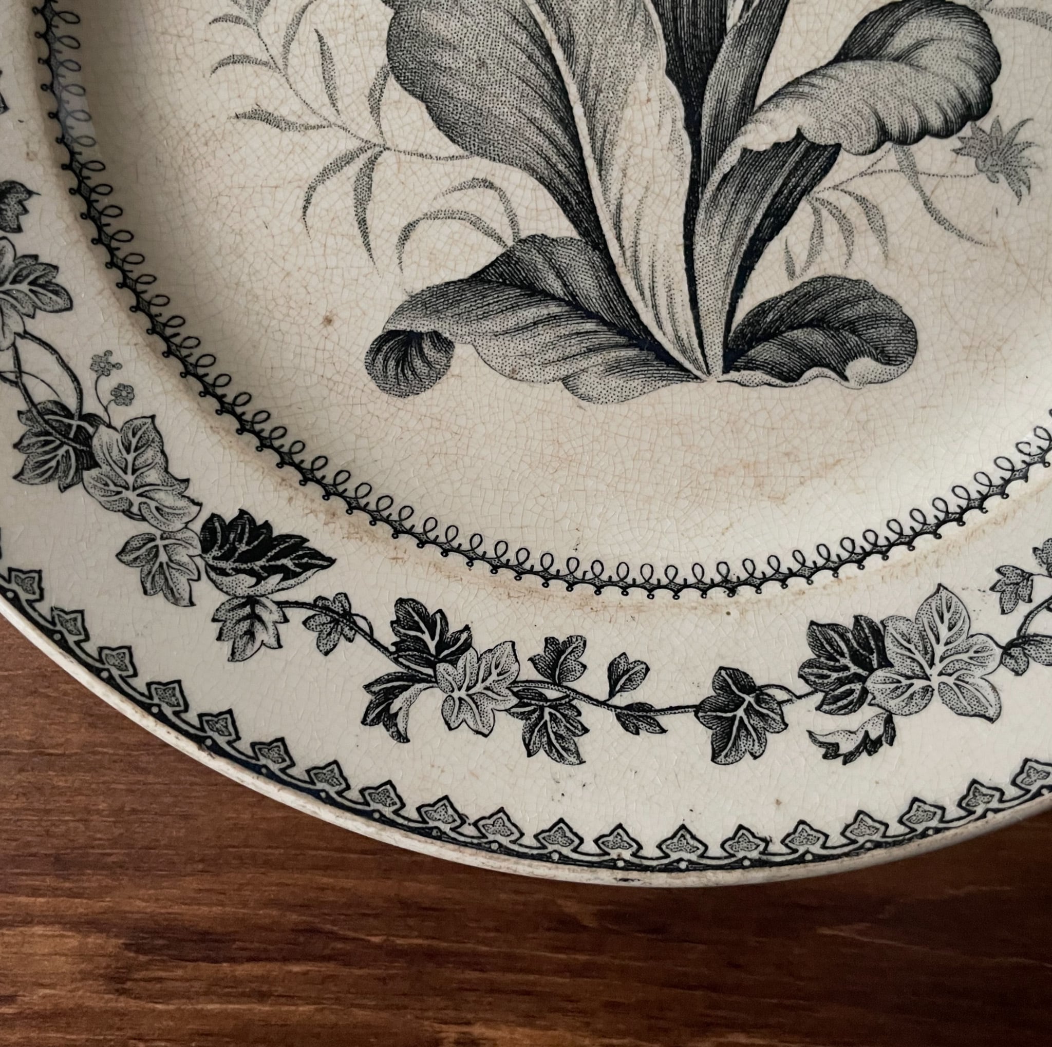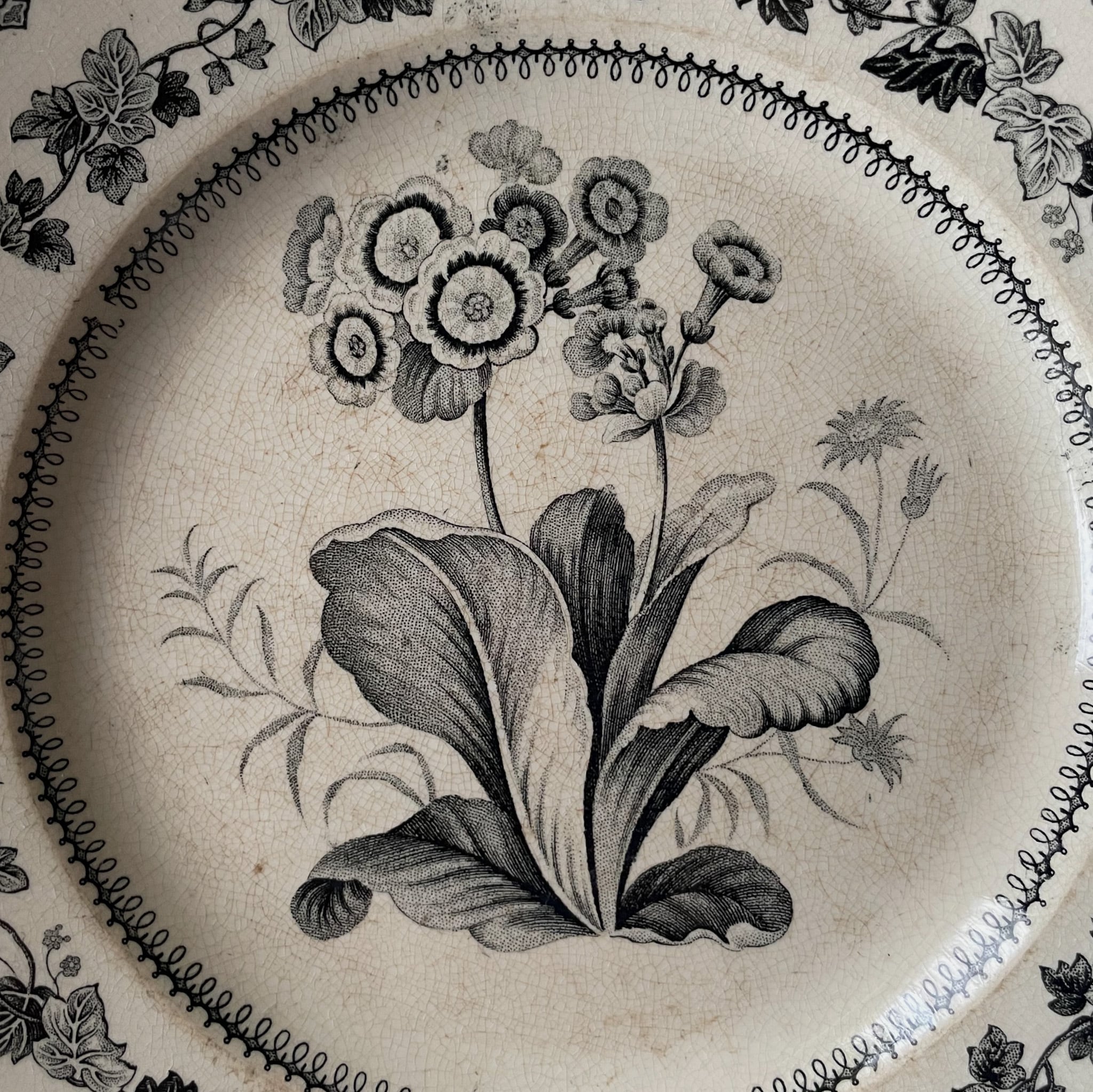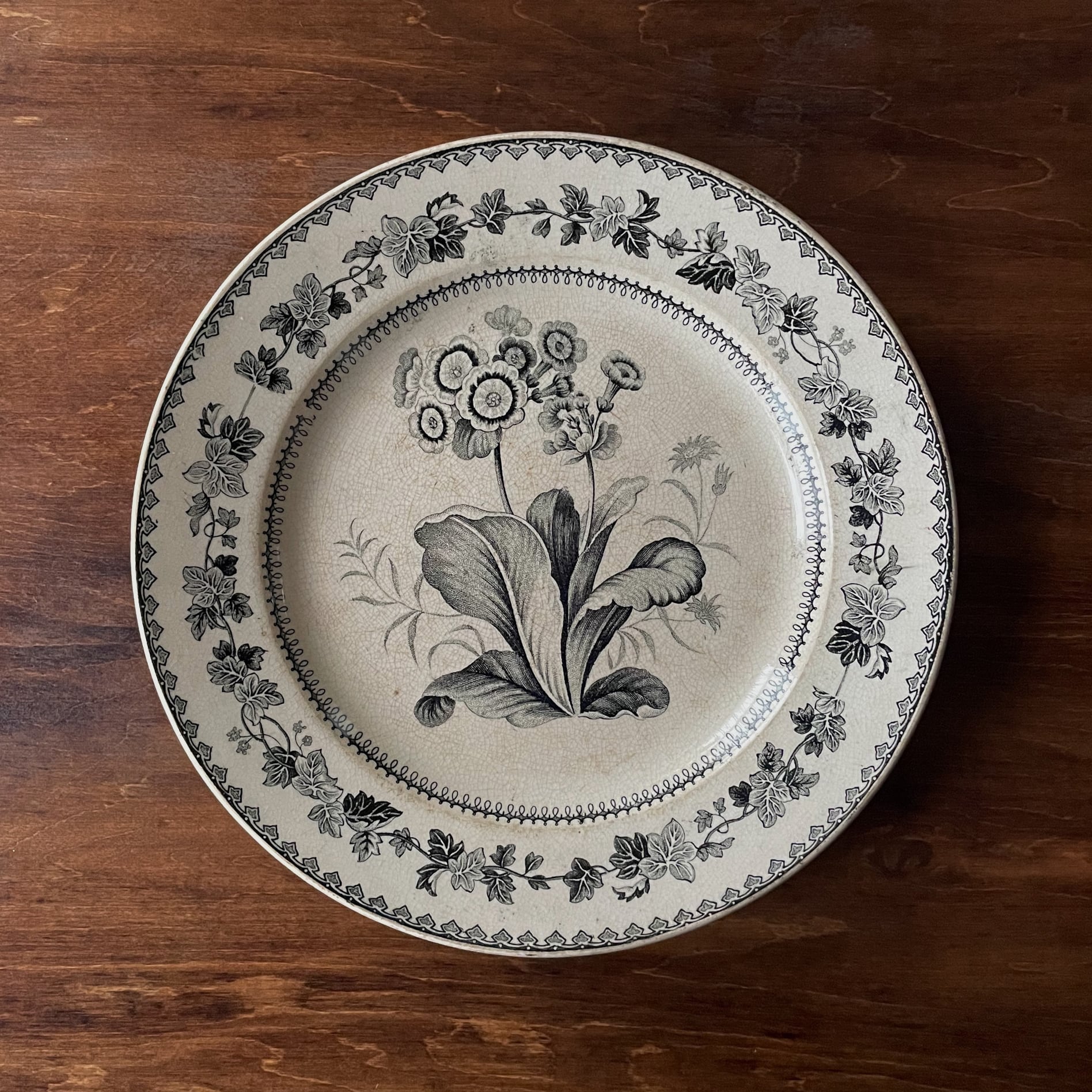 Creil et Montereau グリザイユ皿 プリムラ|France 1880〜1910年頃