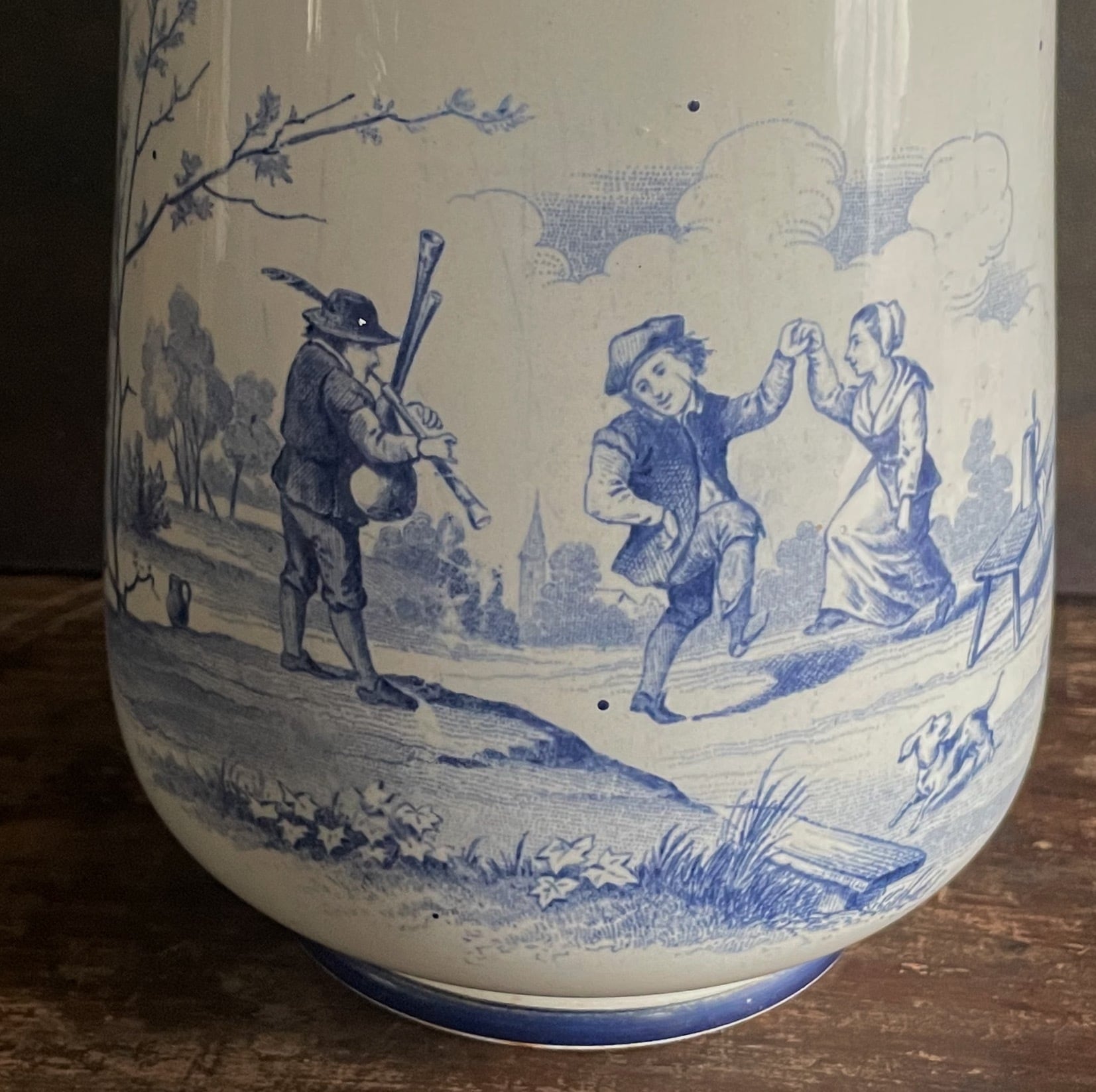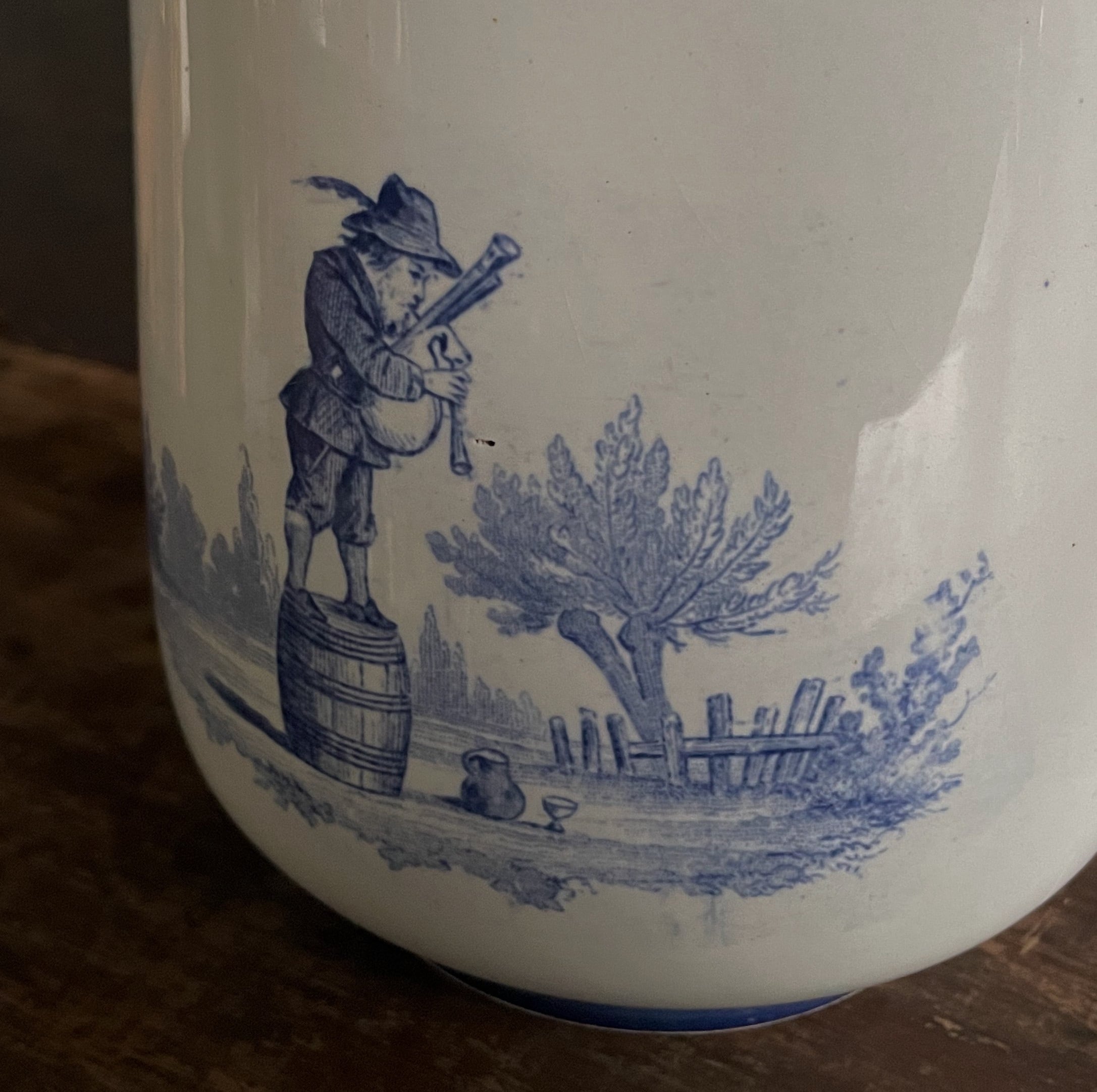 17世紀フランドル派画家、ダヴィッド・テニールスの作品に着想を得た図柄が、ブルー・トランスファー技法によって描かれています。