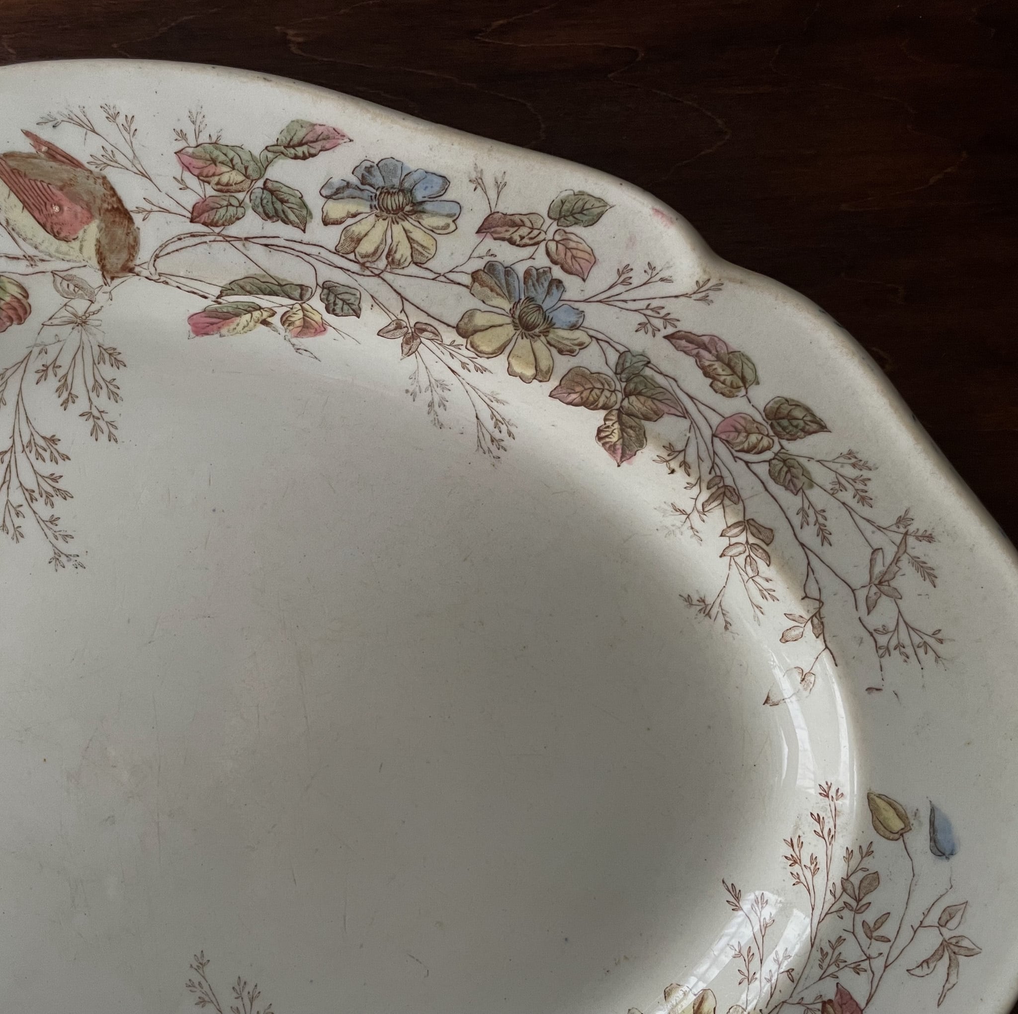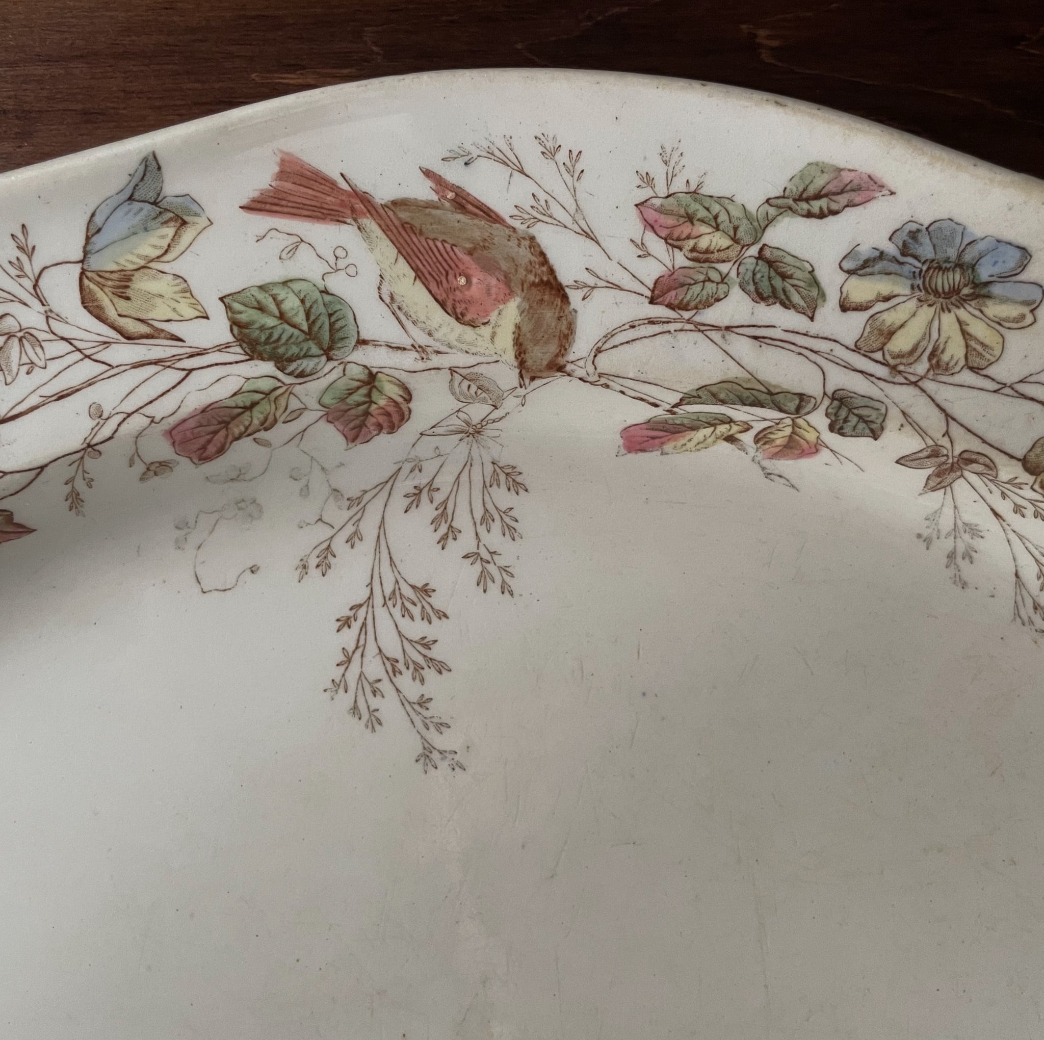 William Alsager Adderley & Co “PAX” 花と鳥のオーヴァル大皿|England 19世紀後頃