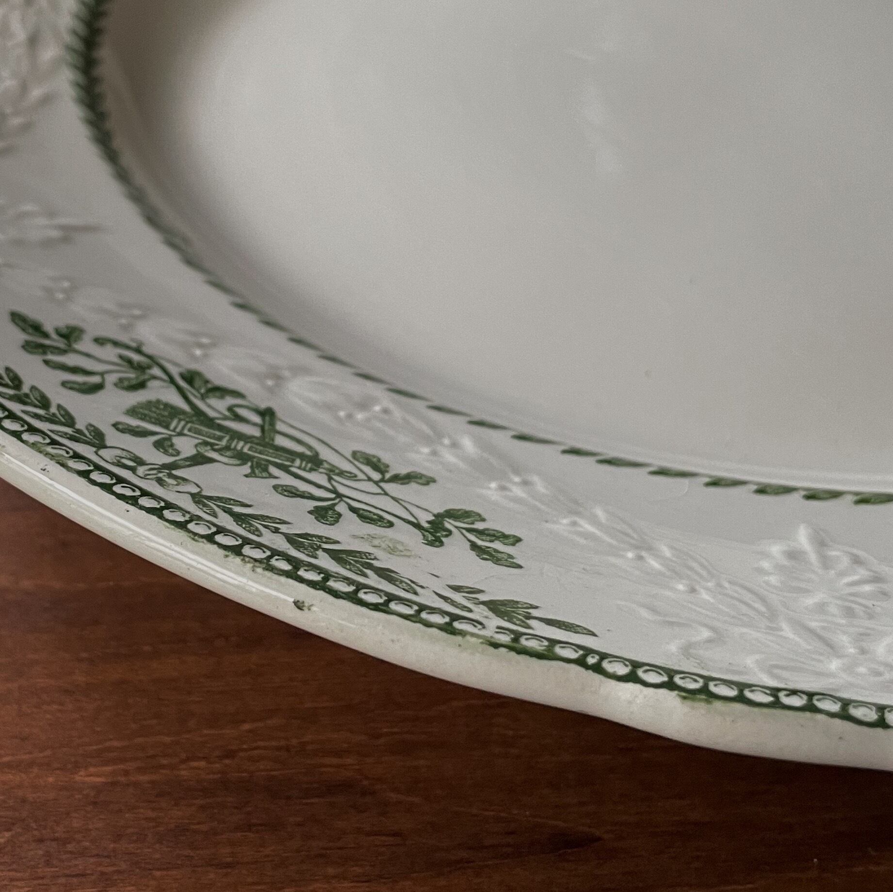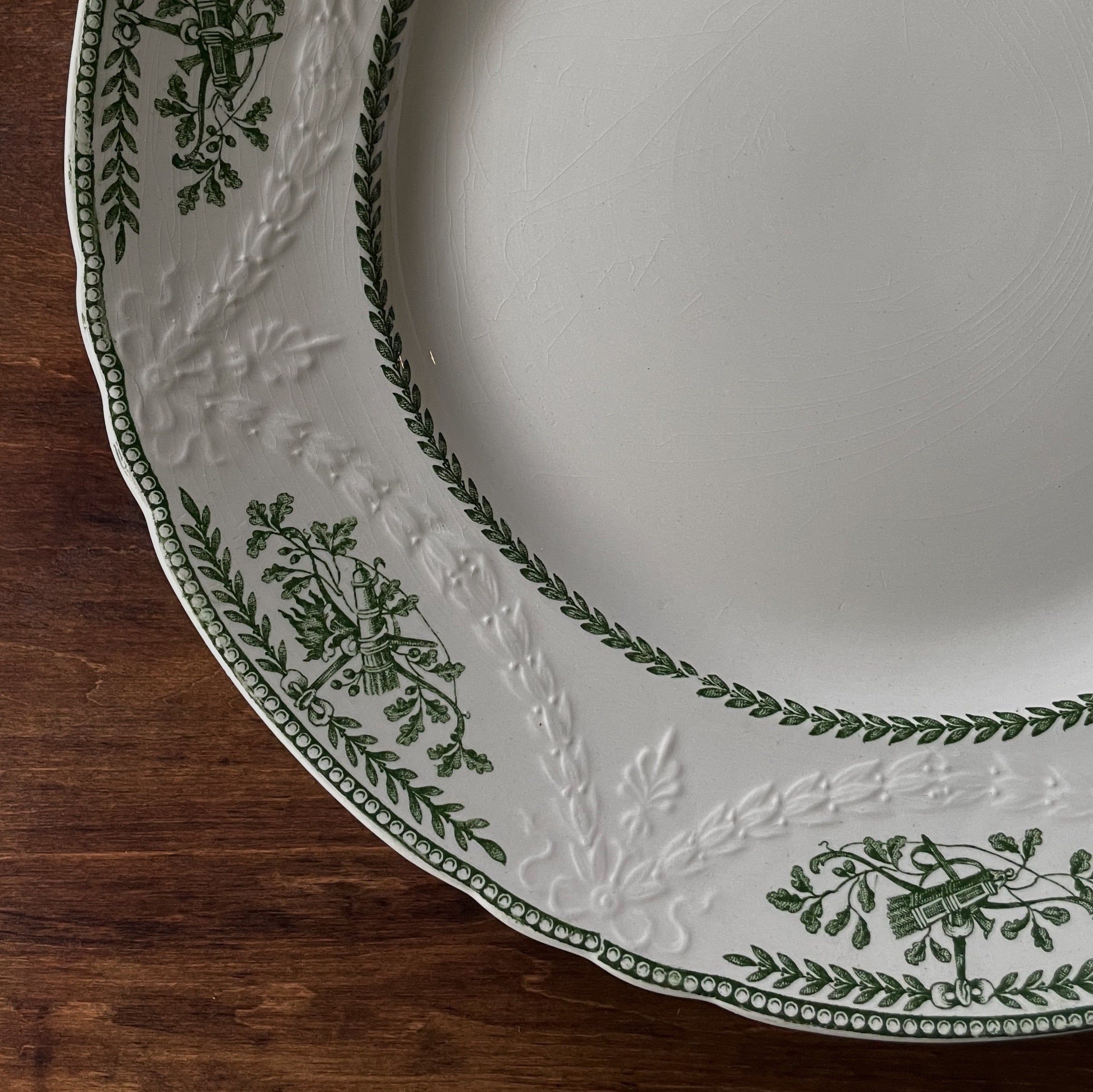 リムに広がる美しいレリーフとグリーンの絵柄