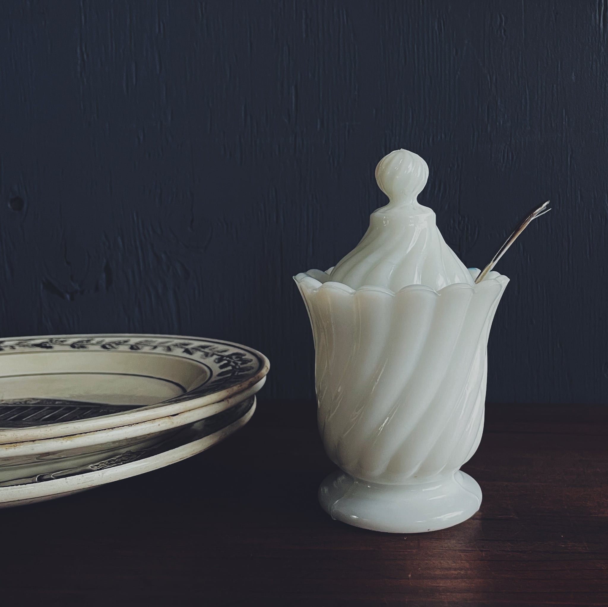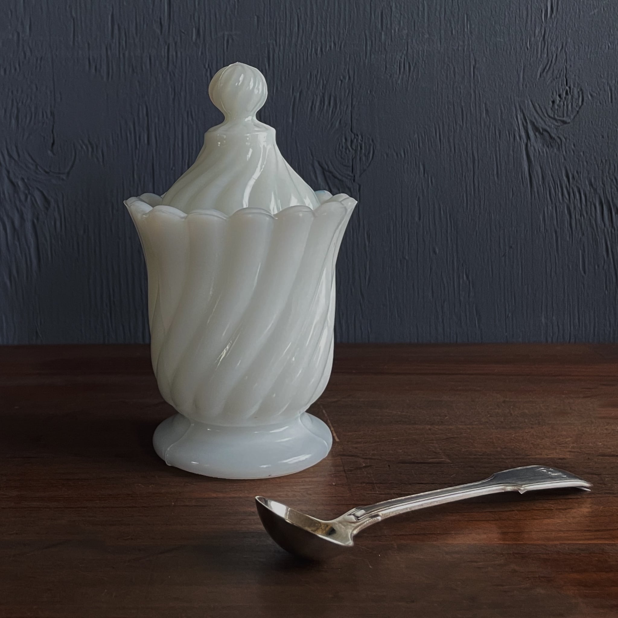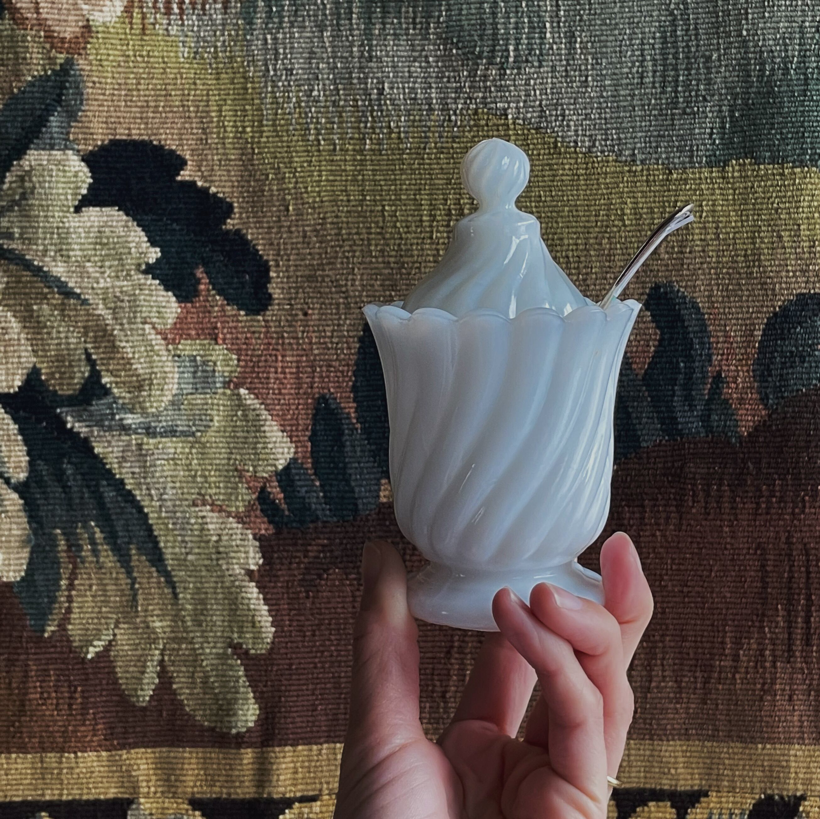 フランス オパリンガラス コンフィチュールポット 20世紀初頃